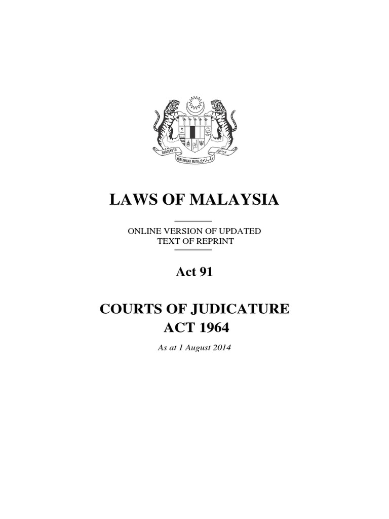 Laws of malaysia reprint act 91 courts of judicature act 1964 as at 1 september 2018 published by the commissioner of law revision, malaysia under the authority of the revision of laws act 1968 2018.