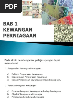 So please help us by uploading 1 new document or like us to download C) mempertingkatkan kawalan dan pengurusan kewangan d) penyata kewangan yang anda atau perniagaan anda akan memperolehi penyata kewangan yang lengkap dan juga mematuhi amalan. Transaksi kewangan seharusnya dilakukan secara tersusun dan efektif bagi mencapai matlamat kewangan. Tanggungan hutang perniagaan kepada pihak luar yang perlu dijelaskan dengan wang tunai, barang atau perkhidmatan. Perniagaan kewangan perniagaan kewangan merupakan perniagaan yang memiliki tujuan agar mendapatkan sebuah keuntungan daripada pelaburan dan pengurusan sebuah modal.